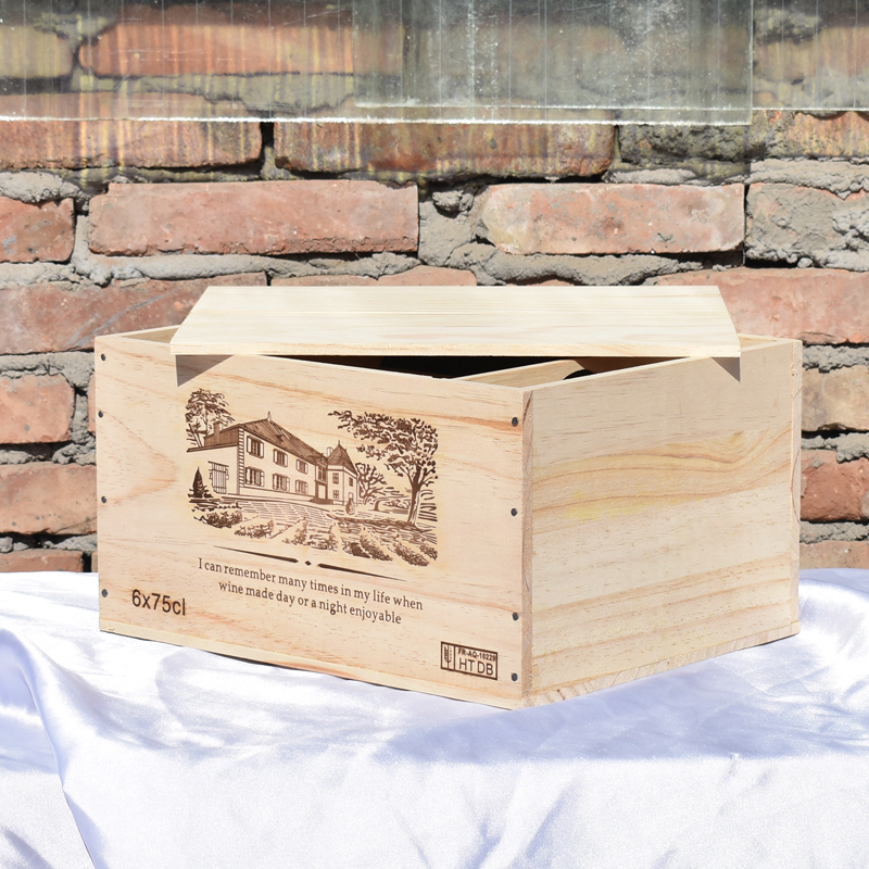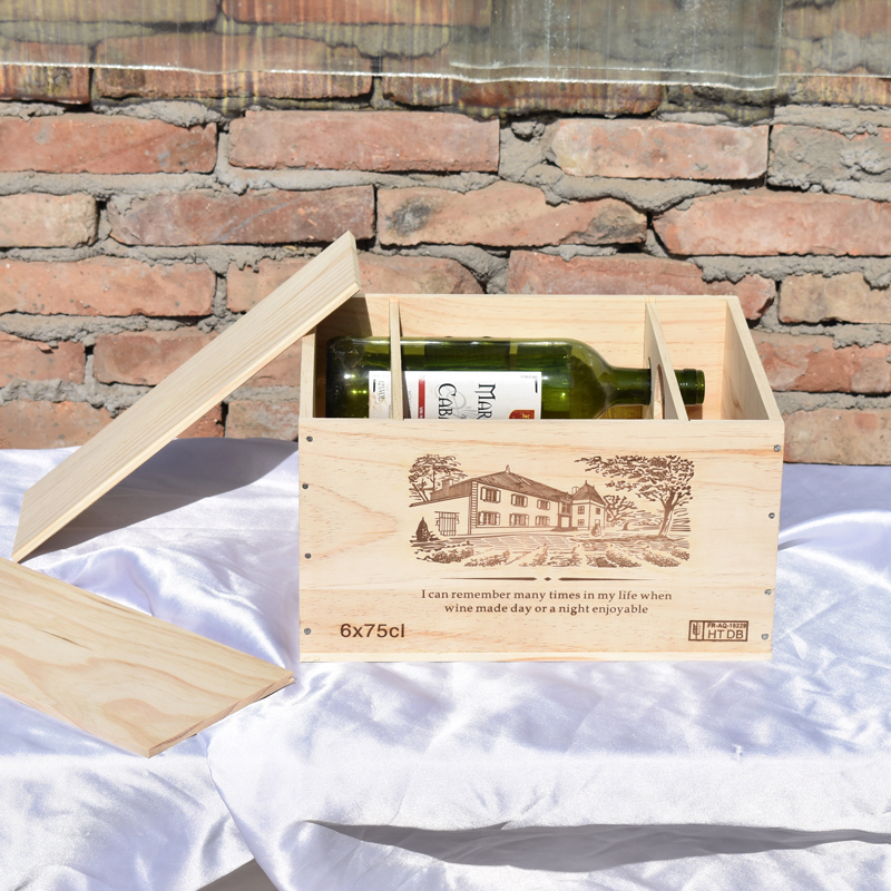 6瓶裝一盒紅酒包裝仿進口木頭箱